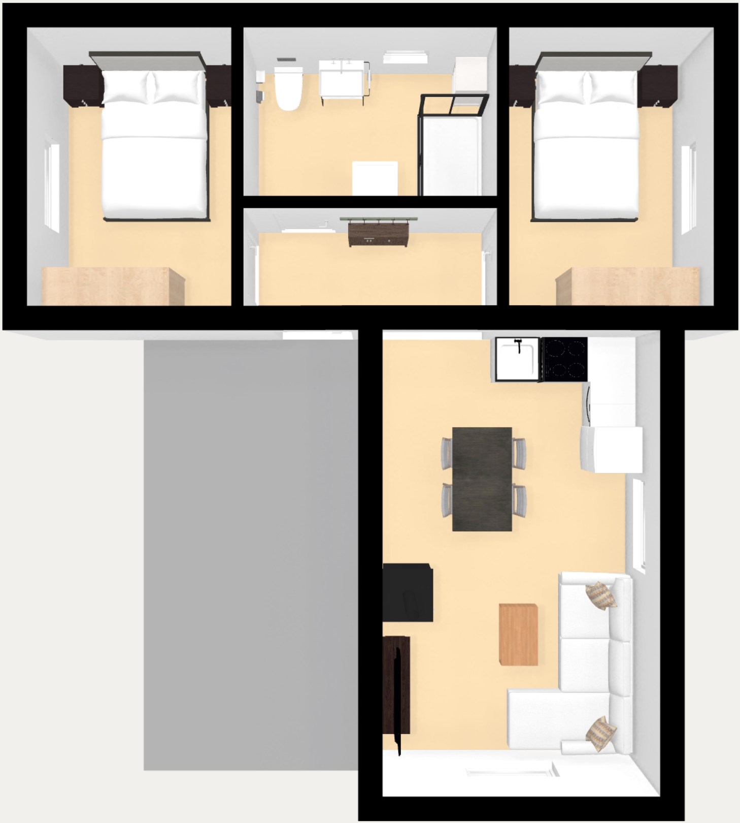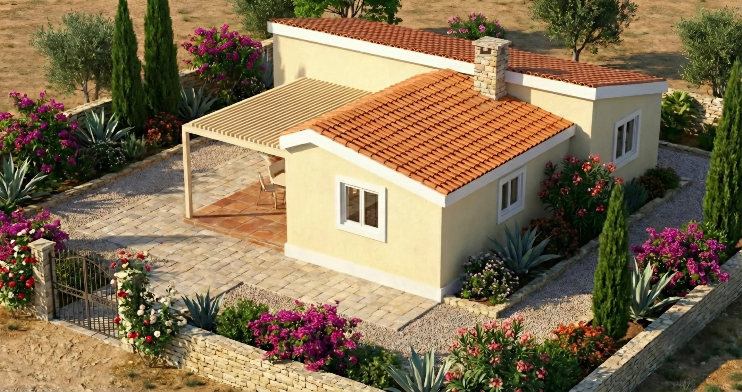 Model Linea V2 predstavlja iskorak prema modernom mediteranskom stilu, karakterističan po svojim razigranim krovnim plohama koje kući daju dinamičan i prepoznatljiv izgled. Njezin tlocrt od 60m2 u obliku slova L nije samo estetski privlačan, već iznimno funkcionalan jer jasno odvaja "dnevnu" od "noćne" zone, pružajući mir i privatnost unutar istog objekta. ​Jedno krilo kuće posvećeno je odmoru s dvije prostrane spavaće sobe i kupaonicom, dok je drugo osmišljeno kao svijetao open-space boravak povezan s kuhinjom. Ključna prednost ovog L-oblika je što sama kuća svojim zidovima prirodno formira i štiti vanjski prostor – stvarajući savršeno "dvorište" u koje se izlazi direktno iz dnevnog boravka. Taj prostor ostavljamo vama na izbor – idealan je za popločanu terasu ili pergolu po vašoj želji. Uz vrhunsku STIROTON izolaciju i kvalitetnu stolariju, Linea je dom stvoren za one koji vole moderni dizajn s potpisom kvalitete.